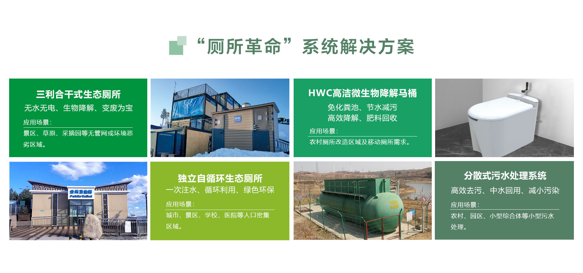 ?我們專注于“源頭”上的廁所革命,系統解決景區(點)、城市和農村三大領域的實際需求,是真正意義上的生態環保廁所。